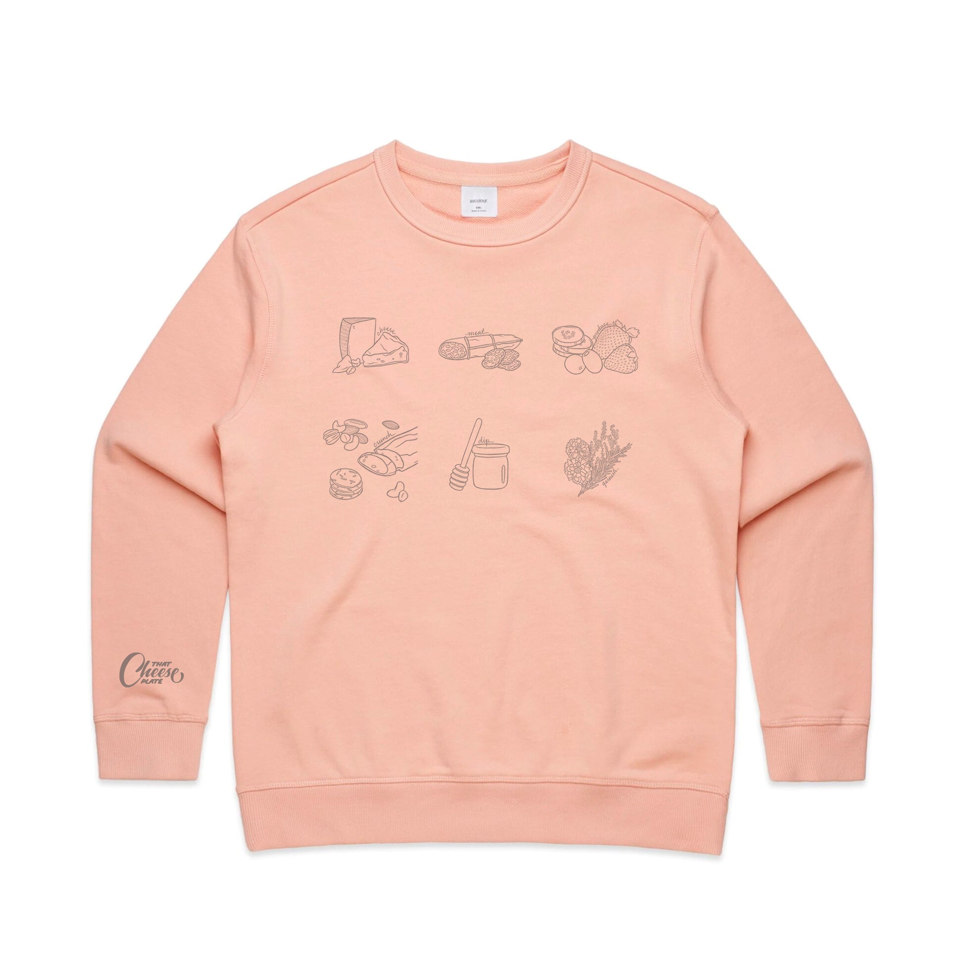 Introducing That Crew Neck, Cheese By Numbers edition! With six hand-drawn illustrations, the sweatshirt showcases each step of the popular "Cheese By Numbers" method: cheese, meat, produce, crunch, dip, and garnish. Show your love for cheese plates in a hip and stylish all year round!